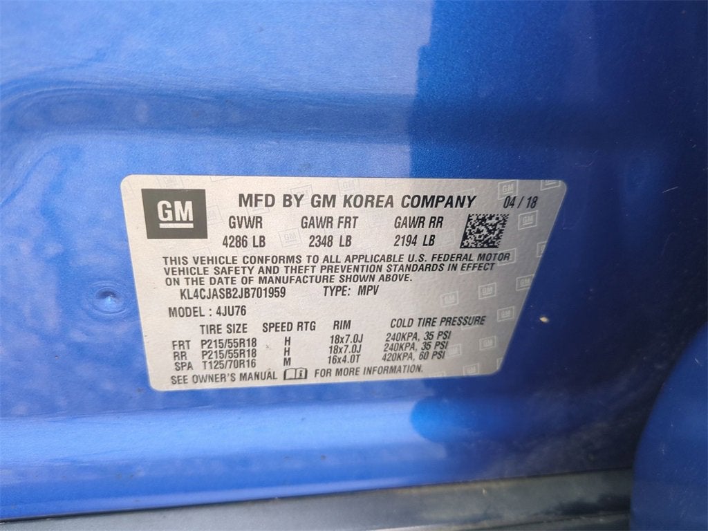 This Encore Preferred is nicely equipped with Preferred Equipment Group 1SB, 2-Way Manual Front Passenger Seat Adjuster, 3.53 Final Drive Axle Ratio, 4-Wheel Disc Brakes, 6 Speakers, 6-Speaker Audio System, 6-Way Power Driver Seat Adjuster, ABS brakes, Air Conditioning, Alloy wheels, AM/FM radio: SiriusXM, Apple CarPlay/Android Auto, Brake assist, Bumpers: body-color, Cargo Net, Cloth w/Leatherette Seat Trim, Compass, Custom Molded Cargo Tray (LPO), Delay-off headlights, Driver door bin, Driver vanity mirror, Driver's Seat Mounted Armrest, Dual front impact airbags, Dual front side impact airbags, Electronic Stability Control, Emergency communication system: OnStar Guidance, Exterior Parking Camera Rear, Front anti-roll bar, Front Bucket Seats, Front reading lights, Front wheel independent suspension, Fully automatic headlights, Heated door mirrors, Illuminated entry, Knee airbag, Low tire pressure warning, Occupant sensing airbag, Outside temperature display, Overhead airbag, Panic alarm, Passenger door bin, Passenger vanity mirror, Power door mirrors, Power driver seat, Power steering, Power windows, Radio data system, Radio: Buick Infotainment System AM/FM Stereo, Rear seat center armrest, Rear side impact airbag, Rear window defroster, Rear window wiper, Remote keyless entry, Remote Vehicle Starter System, Ride & Handling Suspension, Roof rack: rails only, Security system, SiriusXM Satellite Radio, Speed control, Speed-sensing steering, Split folding rear seat, Spoiler, Steering wheel mounted audio controls, Tachometer, Telescoping steering wheel, Tilt steering wheel, Traction control, Trip computer, Turn signal indicator mirrors, Variably intermittent wipers, and Wheels: 18 Machined-Face Alloy. Price does not include licensing costs, registration fees, taxes and dealer doc fee of $899.50 which are to be paid by the consumer.