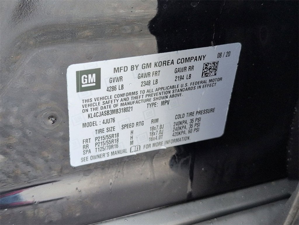 This Encore Preferred is nicely equipped with Preferred Equipment Group 1SB, Safety Package (120-Volt Power Outlet, Rear Cross Traffic Alert, and Side Blind Zone Alert), 18 Aluminum Wheels, 2-Way Manual Front Passenger Seat Adjuster, 3.53 Final Drive Axle Ratio, 4-Wheel Disc Brakes, 6 Speakers, 6-Speaker Audio System, 6-Way Power Driver Seat Adjuster, ABS brakes, Air Conditioning, Alloy wheels, AM/FM radio: SiriusXM, Apple CarPlay/Android Auto, Brake assist, Bumpers: body-color, Cloth w/Leatherette Seat Trim, Compass, Delay-off headlights, Driver door bin, Driver vanity mirror, Driver's Seat Mounted Armrest, Dual front impact airbags, Dual front side impact airbags, Electronic Stability Control, Emergency communication system: OnStar and Buick connected services capable, Exterior Parking Camera Rear, Front anti-roll bar, Front Bucket Seats, Front License Plate Bracket, Front reading lights, Front wheel independent suspension, Fully automatic headlights, Heated door mirrors, Illuminated entry, Knee airbag, Leather steering wheel, Low tire pressure warning, Occupant sensing airbag, Outside temperature display, Overhead airbag, Panic alarm, Passenger door bin, Passenger vanity mirror, Power door mirrors, Power driver seat, Power steering, Power windows, Radio data system, Radio: 7 Diagonal Buick Infotainment System, Radio: Buick Infotainment System AM/FM Stereo (DISC), Rear seat center armrest, Rear side impact airbag, Rear window defroster, Rear window wiper, Remote keyless entry, Remote Vehicle Starter System, Ride & Handling Suspension, Roof rack: rails only, Security system, SiriusXM Radio, Speed control, Speed-sensing steering, Split folding rear seat, Spoiler, Steering wheel mounted audio controls, Tachometer, Telescoping steering wheel, Tilt steering wheel, Traction control, Trip computer, and Variably intermittent wipers. Price does not include licensing costs, registration fees, taxes and dealer doc fee of $899.50 which are to be paid by the consumer.