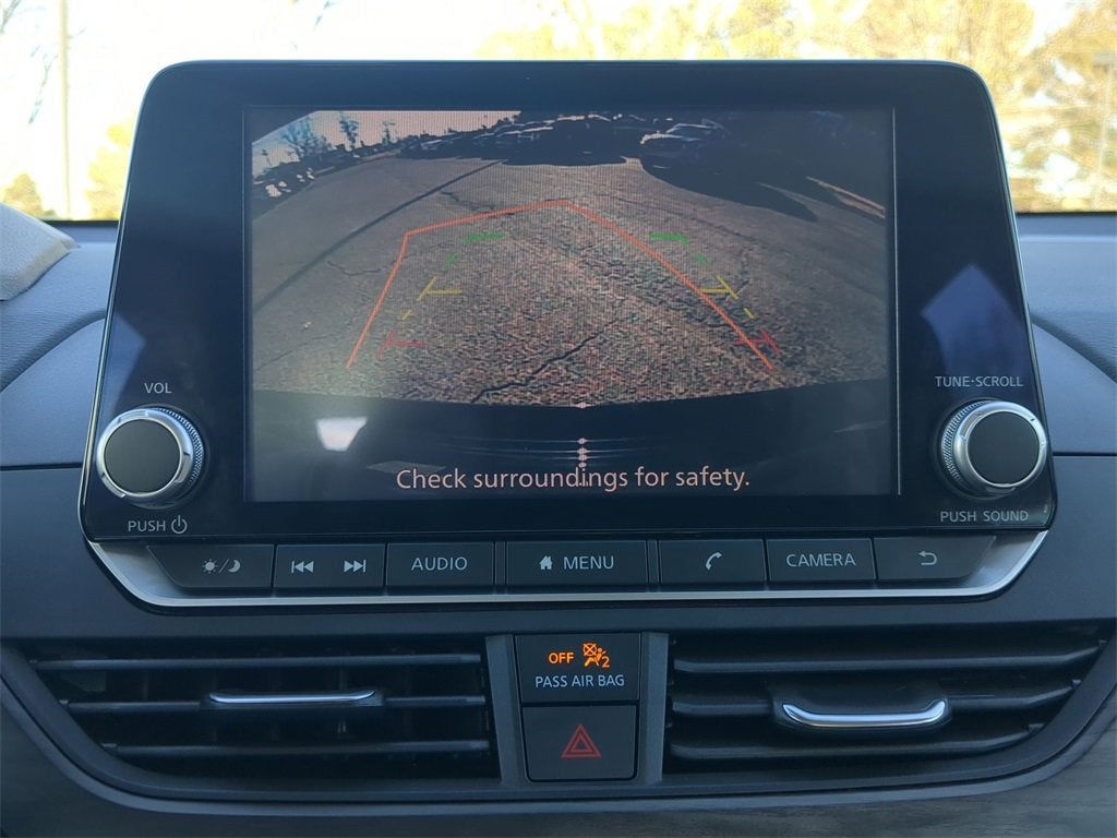 This Altima 2.5 SV is nicely equipped with CVT with Xtronic, 17 Machined Alloy Wheels, 4-Wheel Disc Brakes, 6 Speakers, ABS brakes, Air Conditioning, Alloy wheels, AM/FM radio: SiriusXM, Auto High-beam Headlights, Blind Spot Warning, Brake assist, Bumpers: body-color, Cloth Seat Trim, Delay-off headlights, Driver door bin, Driver vanity mirror, Dual front impact airbags, Dual front side impact airbags, Electronic Stability Control, Floor Mats/Trunk Mat/Hideaway Net, Four wheel independent suspension, Front anti-roll bar, Front Bucket Seats, Front Center Armrest, Front reading lights, Fully automatic headlights, Illuminated entry, Knee airbag, Low tire pressure warning, NissanConnect featuring Apple CarPlay and Android Auto, Occupant sensing airbag, Outside temperature display, Overhead airbag, Overhead console, Panic alarm, Passenger door bin, Passenger vanity mirror, Power door mirrors, Power driver seat, Power steering, Power windows, Radio data system, Radio: AM/FM Audio System, Rear anti-roll bar, Rear Parking Sensors, Rear reading lights, Rear seat center armrest, Rear side impact airbag, Rear window defroster, Remote keyless entry, Security system, Speed control, Speed-sensing steering, Speed-Sensitive Wipers, Split folding rear seat, Steering wheel mounted audio controls, Tachometer, Telescoping steering wheel, Tilt steering wheel, Traction control, Trip computer, and Variably intermittent wipers. Price does not include licensing costs, registration fees, taxes and dealer doc fee of $899.50 which are to be paid by the consumer.