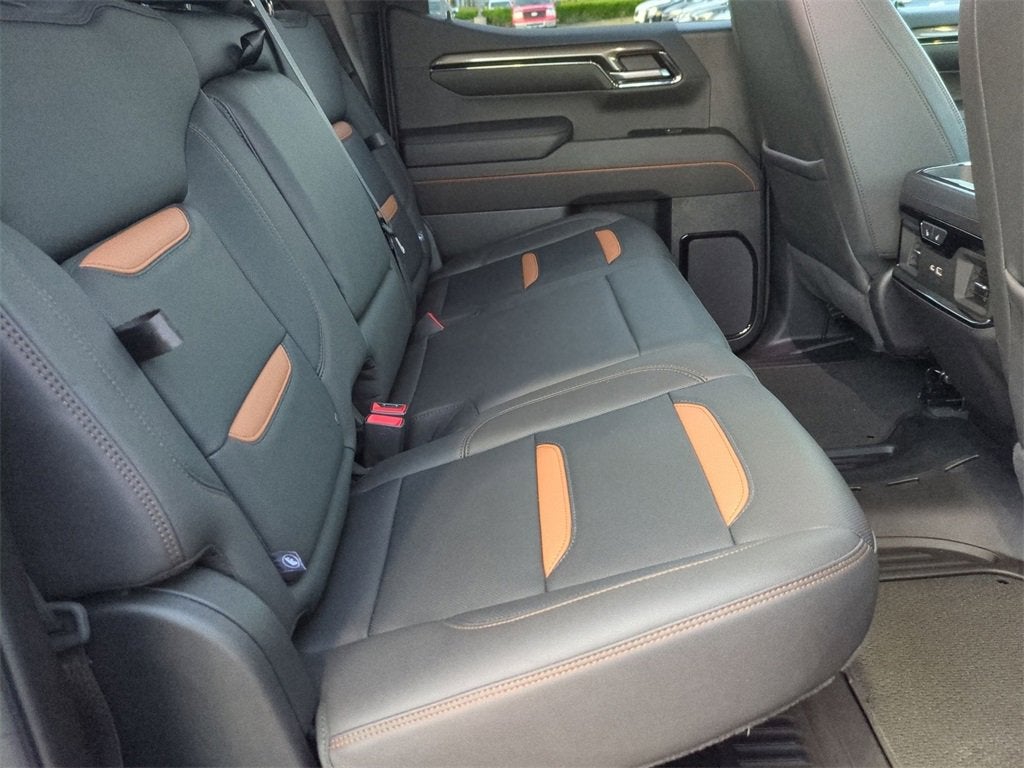 This Sierra 1500 AT4 is nicely equipped with AT4 Preferred Package (Power Sliding Rear Window w/Rear Defogger and Universal Home Remote), AT4 Premium Package (Off-Road High Clearance Step (LPO)), Preferred Equipment Group 4SB (120-Volt Bed Mounted Power Outlet, 120-Volt Interior Power Outlet, 2 Charge/Data USB Ports Inside Center Console, 2 Type-C Charge-Only Rear USB Ports, 2 USB Ports, 220 Amp Alternator, Auto-Locking Rear Differential, Black Chrome Header & Grille Insert Bars, Color-Keyed Carpeting Floor Covering, Deep-Tinted Glass, Electric Rear-Window Defogger, Floor-Mounted Center Console, Front Prem Floor Liners w/Removable Carpet Insert, Front Rain-Sensing Wipers, GMC Connected Access Capable, HD Surround Vision, Heated 2nd Row Outboard Seats, Heated Driver & Front Outboard Passenger Seating, Heavy-Duty Air Filter, Hill Descent Control, Hitch View, In-Vehicle Trailering System App, Integrated Trailer Brake Controller, Keyless Open & Start, LED Cargo Area Lighting, OnStar & GMC Connected Services Capable, Perimeter Lighting, Power Door Locks, Power Front Passenger Windows w/Express Up/Down, Power Front Windows w/Driver Express Up/Down, Power Rake & Telescoping Steering Column, Power Rear Windows w/Express Down, Premium Bose 7-Speaker Sound System, Push Button Start, Rear Cross Traffic Braking, Rear Pedestrian Detection, Rear Prem Floor Liners w/Removable Carpet Insert, Rear Wheelhouse Liners, Red Recovery Hooks, Remote Vehicle Starter System, SiriusXM w/360L, Spray-On Pickup Bedliner w/AT4 Logo, Steering Wheel Audio Controls, Theft Deterrent System (Unauthorized Entry), Trailer Camera Provisions, Trailer Side Blind Zone Alert, Ultrasonic Front & Rear Park Assist, Ventilated Driver & Front Passenger Seats, Wi-Fi Hotspot Capable, and Wireless Charging), Technology Package (Bed View Camera, Multicolor 15 Diagonal Head-Up Display, and Rear Camera Mirror), Trailering Package (Hitch Guidance), GM Certified, 10-Speed Automatic, 4WD, Jet Black With Kalahari Accents Leather, 10-Way Power Driver Seat Adjuster w/Lumbar, 10-Way Power Passenger Seat Adjuster w/Lumbar, 170 Amp Alternator, 18 x 8.5 Machined Aluminum Wheels, 3.23 Rear Axle Ratio, 4-Wheel Disc Brakes, 7 Speakers, ABS brakes, Air Conditioning, Alloy wheels, AM/FM radio: SiriusXM with 360L, Apple CarPlay/Android Auto, Auto High-beam Headlights, Auto-dimming door mirrors, Auto-dimming Rear-View mirror, Automatic Emergency Braking, Automatic temperature control, Auxiliary External Transmission Oil Cooler, Block heater, Brake assist, Buckle to Drive, Bumpers: body-color, Compass, Delay-off headlights, Driver door bin, Driver Memory, Driver vanity mirror, Dual Active Exhaust, Dual front impact airbags, Dual front side impact airbags, Electronic Stability Control, External Engine Oil Cooling, Following Distance Indicator, Forward Collision Alert, Front anti-roll bar, Front Bucket Seats, Front Center Armrest, Front dual zone A/C, Front fog lights, Front Pedestrian Braking, Front reading lights, Front wheel independent suspension, Fully automatic headlights, Heated door mirrors, Heated front sea